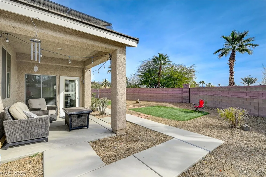 MOTIVATED SELLER! This beautifully maintained home is nestled in a quiet, sought-after neighborhood. This inviting residence offers a thoughtful layout designed for both everyday living and effortless entertaining. The home boasts the largest lot in the community & sits on OVER 1/4 ACRE. A guest suite w/ separate entry make this perfect for family living or visitors . The kitchen boasts stainless steel appliances & granite countertops. All bedrooms have walk-in closets & ceiling fans. Permitted extension to home adds almost 400 sq ft of extra space. Recently installed luxury plank vinyl, water heater, A/C unit, & refrigerator (all within last year). Recently installed solar panels, smart bulbs & Nest thermostats will help keep the home energy efficient for the long haul. Step outside to enjoy a peaceful outdoor setting—fruit trees, desert landscaping, & enough space to have a pool…let your imagination run wild.