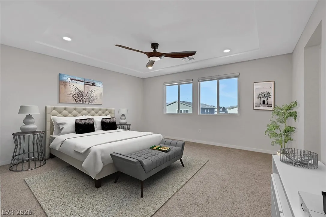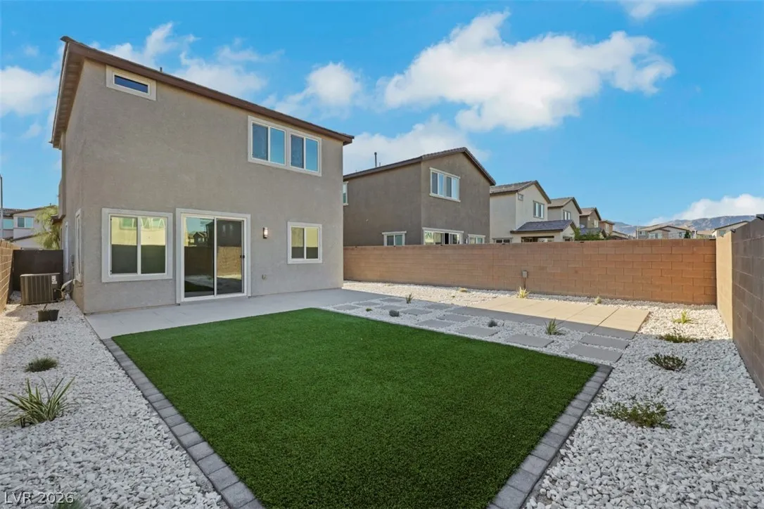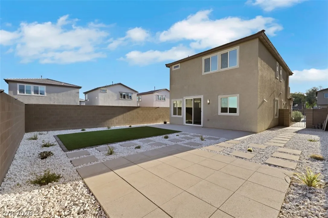 Step into modern luxury with this highly upgraded North Las Vegas home. Built in 2023 and offering a seamless blend of style, technology, and functionality. Designed for today’s lifestyle, the open-concept layout features upgraded tile flooring, quartz countertops, elegant coffered ceiling detail, dual pantry storage, and soft-close cabinetry. The kitchen stands out with GE appliances and a Bosch smart refrigerator, perfect for both everyday living and entertaining.Enjoy full smart-home capability with app-controlled fans, thermostats, MyQ garage access, washer/dryer, refrigerator included! The backyard is thoughtfully finished with porcelain and Belgard pavers, Utah White rock, and pre-wired electrical for a future spa or water feature. Additional upgrades include Aqua-Sure water filtration, Rinnai tankless water heater, sun-tinted windows, and an epoxy-coated garage. Move-in ready and loaded with premium features—this home offers the ideal combination of comfort and modern living.