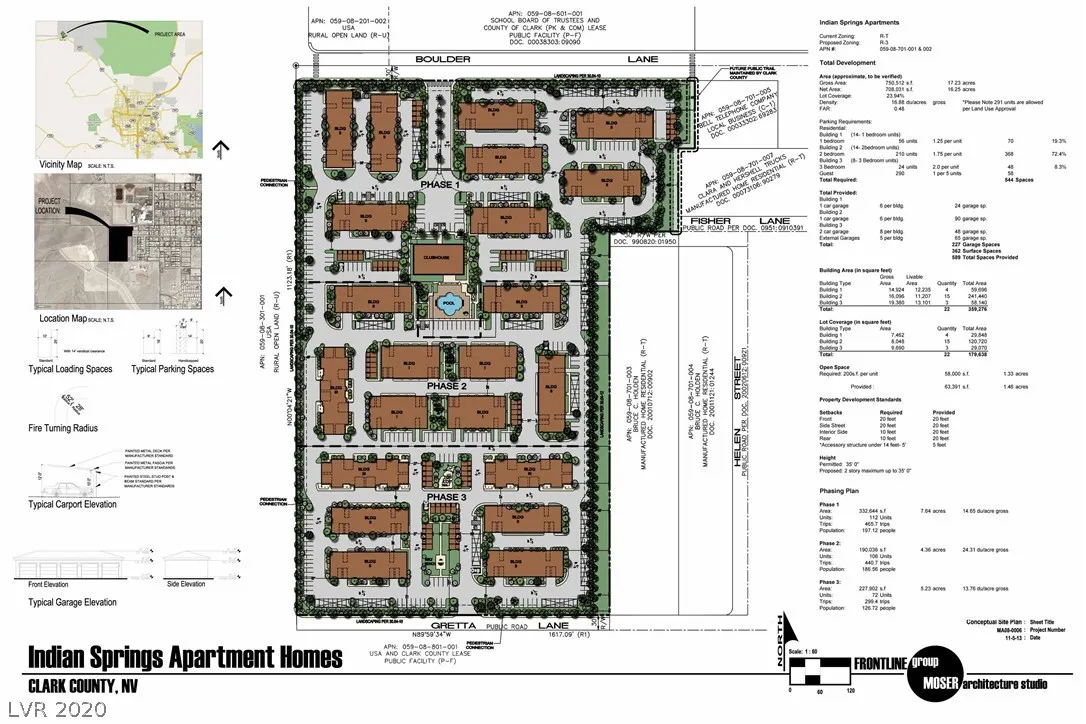 16.44 net acres Zoned R-3(304 units approved-waivers of off-site improvements & certain construction taxes).Indian Springs Directly across US Hwy-93 from the rapidly expanding Creech AFB-home of our military’s RPA’s(drones), NNSS,DOD,Yucca Mt,High Desert Correctional et al. employing approx 4,500-6,000!Located 25-35+/- miles NW of LV.Paved roads,Wtr & Swr;Ideally located between Ind Spgs schools & Public Parks & Rec Cntr* Current Creech AFB employment statistics now available w/Base Housing Allowance numbers – impressive! – contact L/A for details. New Family Dollar store now open. New Terrible Herbst Casino/Fuel Depot & Bob’s Big Boy sit-down restaurant 9-2020! Touchstone Homes sold out their subdivision-Beazer Homes SFR detached Solaris Subd now underway! Indian Springs is now VERY busy w/development! Fiber optic broadband & inet service now under evaluation for the Town-CLA! *Consider JV or sale*