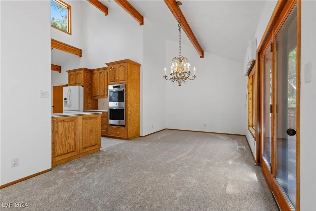Exquisite mountain home borders USFS land with a dynamic design. Cedar siding + robust beams emit a warm, rustic charm that echoes the surrounding landscape. Bright + inviting, adorned w/large view windows that flood the interior space w/natural light. Serene sunroom provides the perfect vantage point to enjoy beautiful views of the forest + mountains. Living room w/wood-burning insert + heatilator, becomes the ideal setting for cozy evenings. Toiyabe National Forest is your extended backyard, offering unlimited exploration right at your doorstep. Experience the beauty of all four seasons from the front row seat of your home’s multiple decks, whether it’s the vibrant hues of fall foliage or the serene blanket of the first snowfall. Detached two-car garage w/ample storage space, massive paver driveway + parking, finished space above the garage offers endless possibilities for an office/gym/hobby room – perfectly tailored to fit your lifestyle needs. High-altitude serenity, daily.
