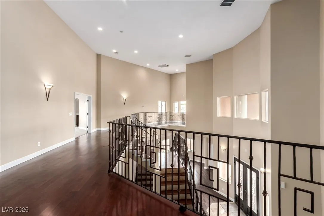 Discover luxury living in this stunning 2 story home located inside a gated community. This elegant residence offers 5 bedrooms, 3.5 bathrooms, and a 3 car garage. The open concept chef inspired kitchen features granite countertops, a breakfast bar, stainless steel appliances, and a massive walk in pantry perfect for cooking and entertaining. Tile flooring throughout the lower level adds style and sophistication. One bedroom and 1.5 bathrooms are conveniently located downstairs. Upstairs, the primary suite is a private retreat with double doors, vaulted ceilings, a cozy fireplace, a balcony, & two walk in closets. The spa like bathroom includes dual sinks, a jetted tub, separate shower, bidet, and flooring. The expansive backyard is ideal for gatherings with a covered patio and plenty of room to design your dream outdoor oasis. Along with all of these fantastic features there is large den with its own retreat. Brand new carpet in the bedrooms and fresh paint throughout.