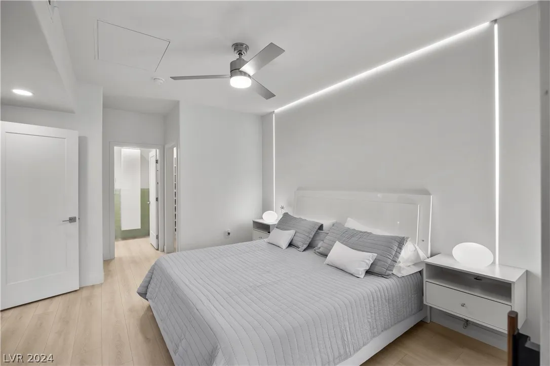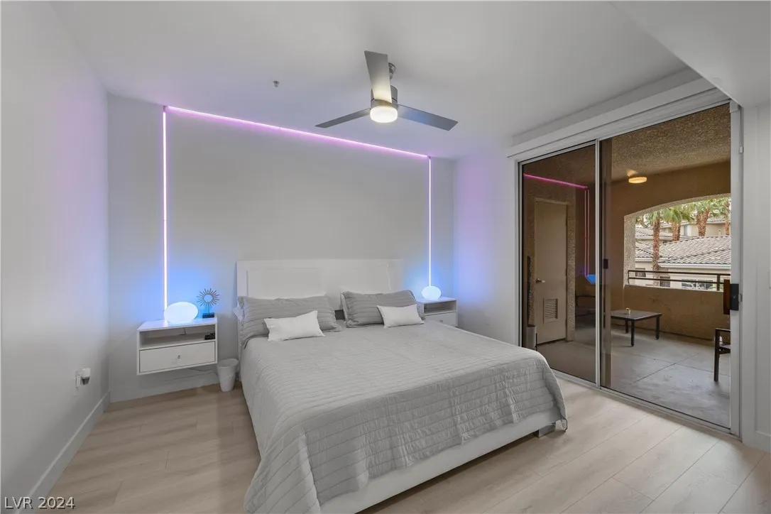 Fully Furnished SHORT OR LONG TERM, UTILITIES INCLUDED. Welcome to Vistana~ An Ultra Modern 1 Bd Condo with attached 1 Car Garage. Steps away from The Posh Durango Resort & Uncommons Shopping Center. Unparalleled Style meets Functionality. A Smart Condo with stunning built in LED Mood Lighting throughout, Motorized Window Shades, Spacious Layout, High End Appliances, Gorgeous & highly functional European Cabinetry all sure to please your stay. Enjoy a unique layout with access to the oversized balcony from the Primary Suite or Living room offering tranquil views of the Luxury Fitness Center, Pool, Hot Tub, BBQ Grills, and Clubhouse. End your day in the luxurious Spa Bath in the Primary Suite complete with Flat Screen TV, King Size Bed & Celebrity Built in Closet! This Condo unit is also located near the main Guard Gate & Pedestrian Gate leading to Resorts & Shopping Centers, 2 minutes from 215 freeway giving you access to Henderson, Summerlin, The Strip & Airport within a 15 min drive.