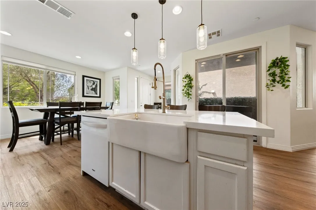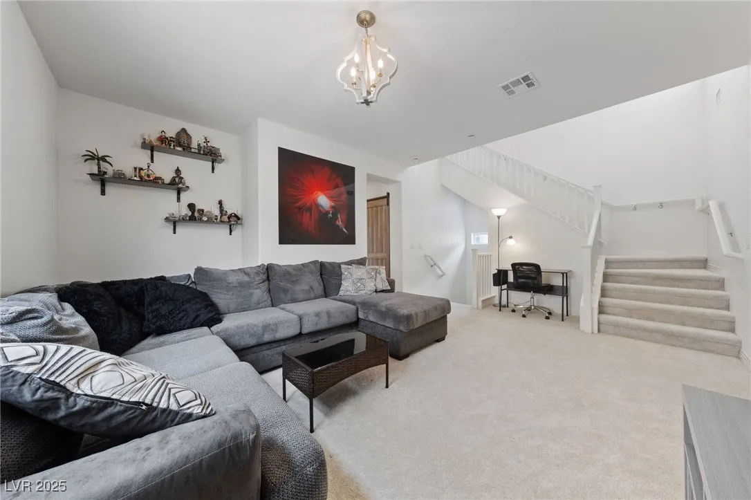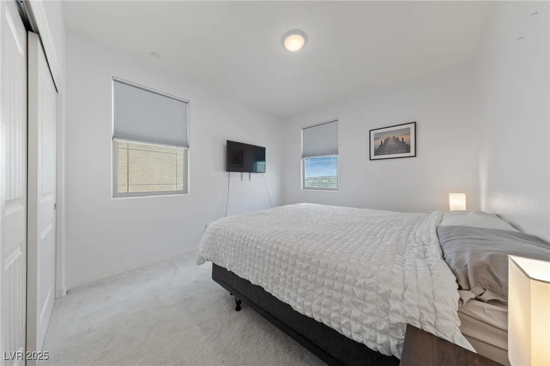 Stunning home in Inspirada with 4 beds, 3.5 baths, and rare 3rd-floor retreat featuring a bedroom, full bath, huge loft/flex space, and a massive balcony with mountain and community views! The first floor showcases custom wood grain laminate floors and a large open kitchen with white quartz countertops, a farmhouse sink, a butcher block accent, and a walk-in pantry. The spacious primary suite on the 2nd story offers two private balconies and a luxurious bath with a custom walk-in shower. Upgraded carpet on stairs and upstairs bedrooms. This model-perfect home blends thoughtful design with comfort and style. Think: a super cool 2-story with a 3rd floor basement – very neat find! Enjoy all Inspirada has to offer—parks, pools, trails, and more!