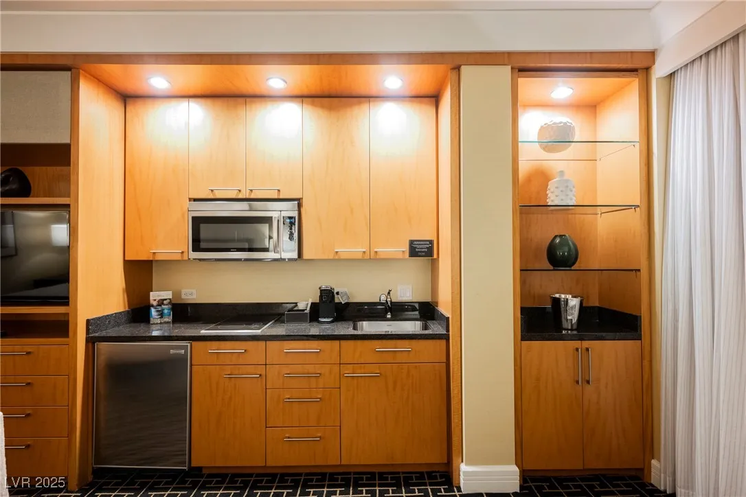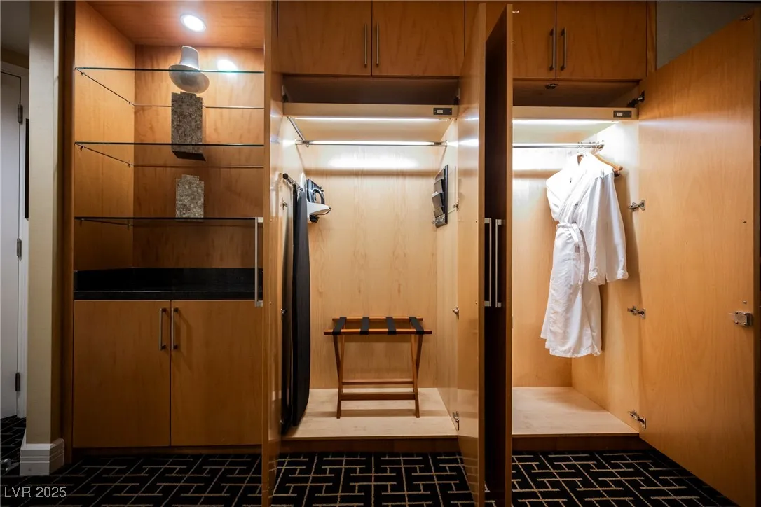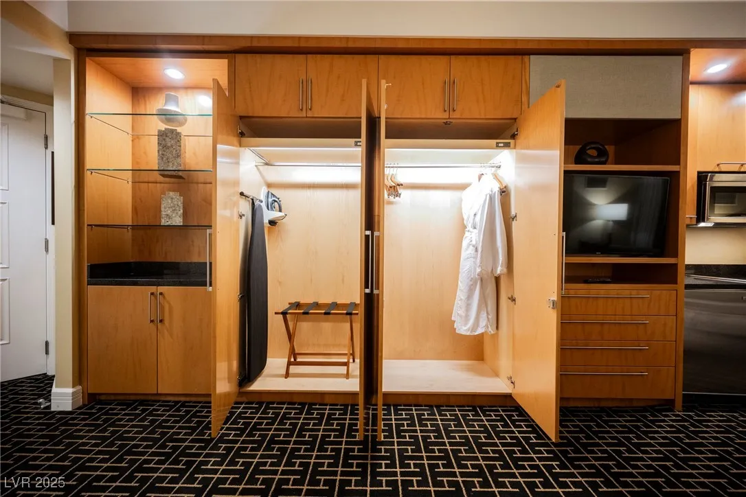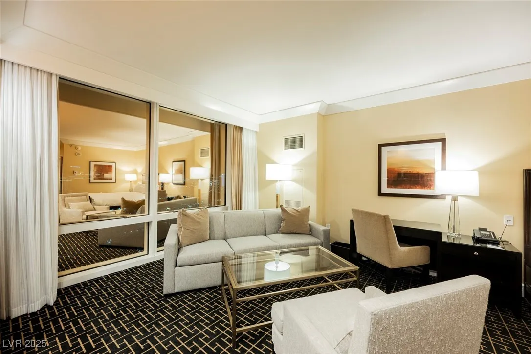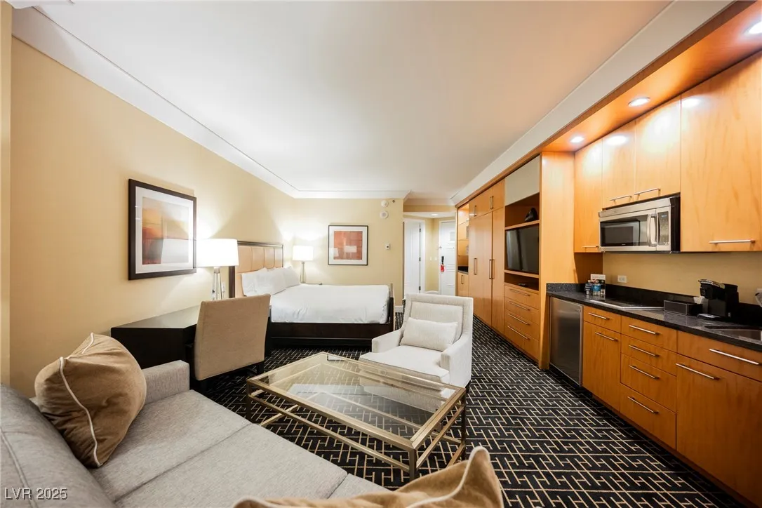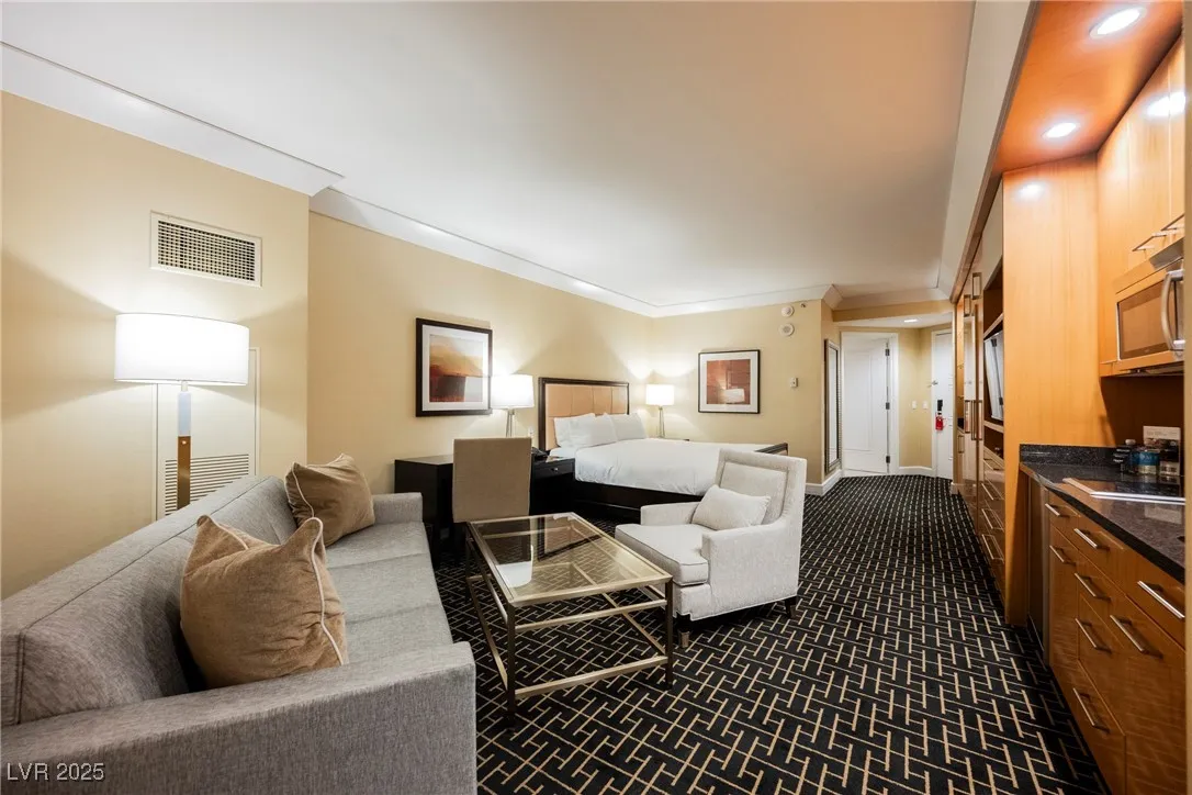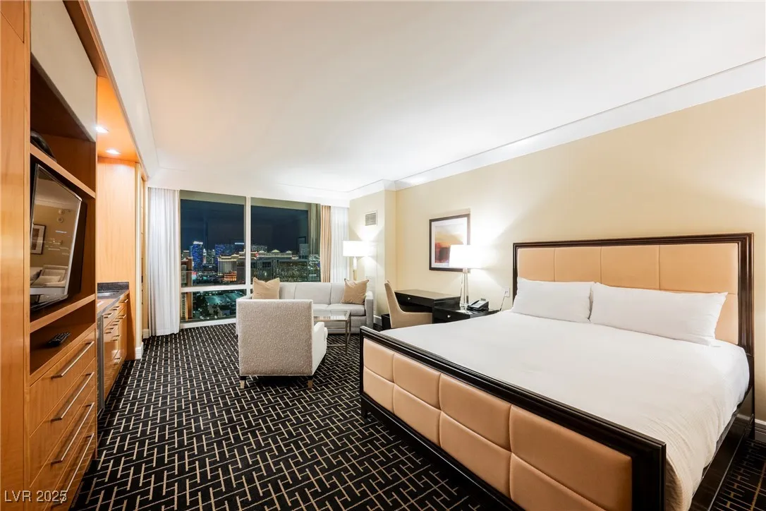 Welcome to the prestigious Trump Tower! This sought-after studio suite showcases stunning panoramic views of the entire Las Vegas Strip — plus direct, unobstructed views of the iconic MSG Sphere. Experience upscale high-rise living in this 5-star luxury hotel. This fully furnished studio features top-tier finishes, including Sub-Zero, Bosch, and Wolf appliances, sleek Italian marble flooring, granite countertops, custom maple cabinetry, a relaxing Jacuzzi tub, and floor-to-ceiling windows to showcase the incredible views. Residents & guests enjoy exceptional amenities such as 24-hour security, concierge, lobby bar, pool and spa w/ cabanas, a world-class fitness center and a renowned full-service spa. Trump Tower offers a refined, non-gaming, non-smoking environment just minutes from all the action Las Vegas has to offer. Ideal for a lock-and-leave lifestyle, with an optional on-site rental program available. Unit can be purchased together with adjacent unit.