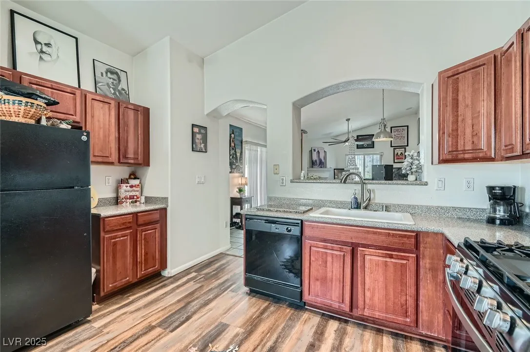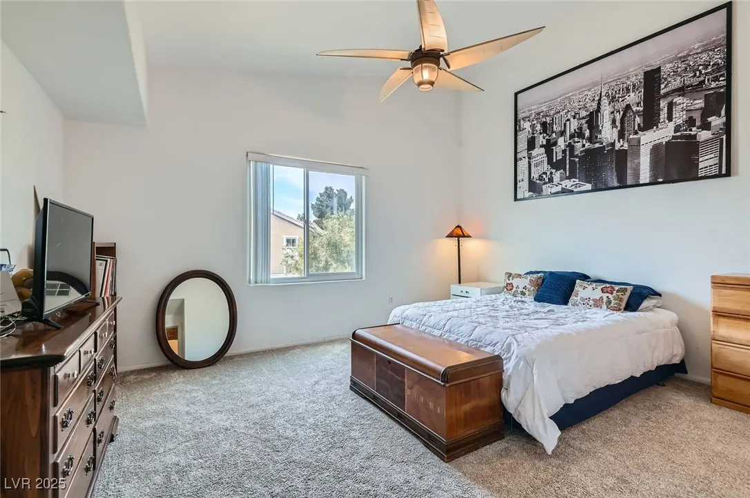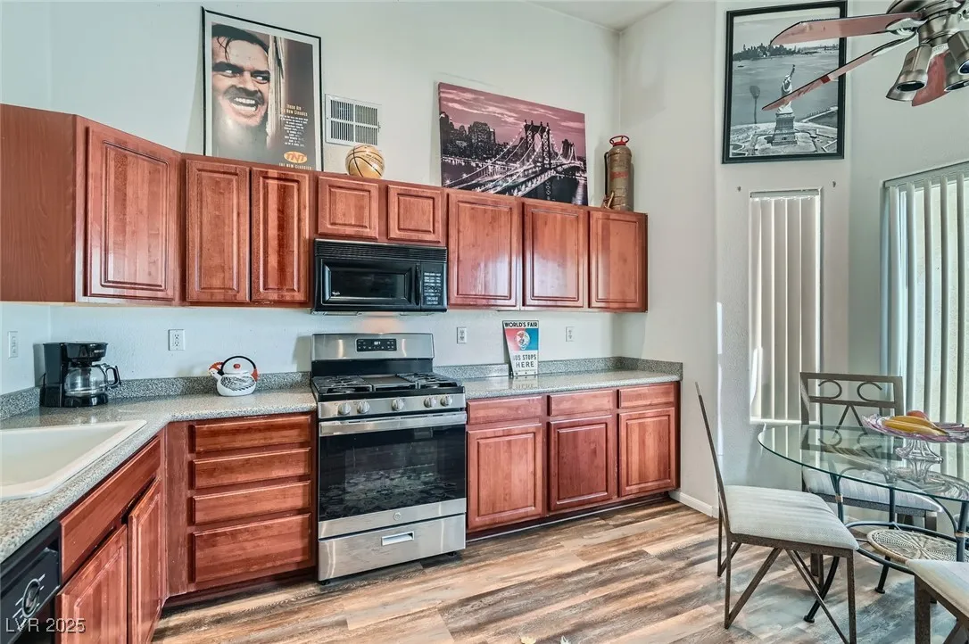 Spectacular second-floor condo located in a gated community with tons of charm and upgrades! Step inside to find newer luxury vinyl flooring, ceiling fans, and vaulted ceilings that make the space feel open and airy. The smart floorplan features totally separate primary and secondary bedrooms, offering privacy and comfort for everyone. The sunny eat-in breakfast nook opens to a beautifully upgraded kitchen with granite countertops, ample cabinet space, a microwave, refrigerator, and washer & dryer included! Spacious living room with cozy fireplace. The primary suite is a relaxing retreat with a walk-in closet, dual sinks, garden-style soaking tub, and a separate shower. Enjoy your morning coffee or evening unwind on the private balcony with mountain views. The gated community offers access to a sparkling pool and spa, perfect for enjoying sunny days. This move-in-ready condo is the ideal blend of comfort, convenience, and style—don’t miss out!
