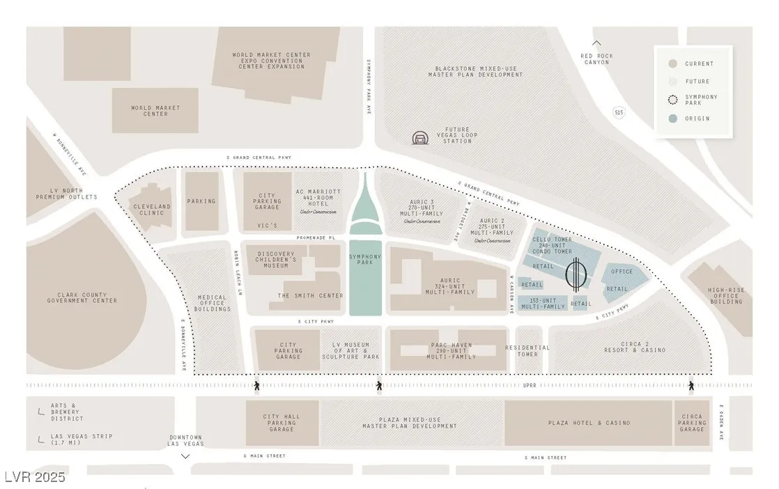 Symphony Park has emerged as the cultural epicenter and preeminent urban neighborhood in Las Vegas with existing and future developments, including retail, restaurants, grocery store, world-class medical offices, upscale hotels, & modern residences. Located within Symphony Park is The Smith Center for the Performing Arts, Elaine Wynn’s Las Vegas Museum of Art, Discovery Children’s Museum, Cleveland Clinic, AC Marriott/Element Hotel & more.