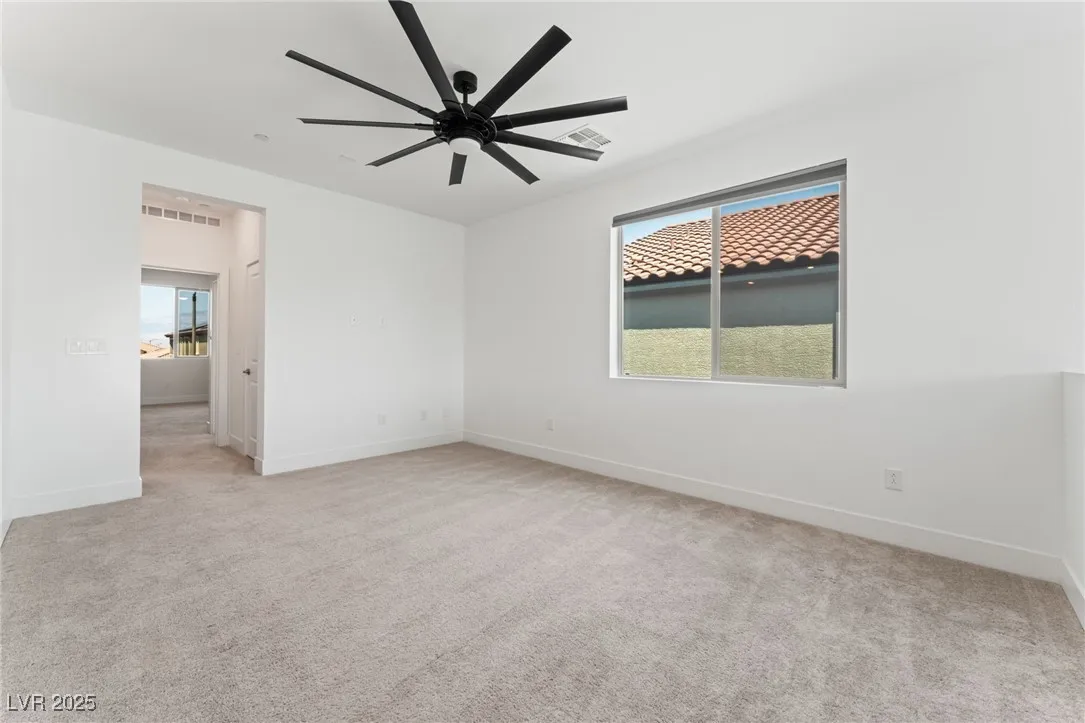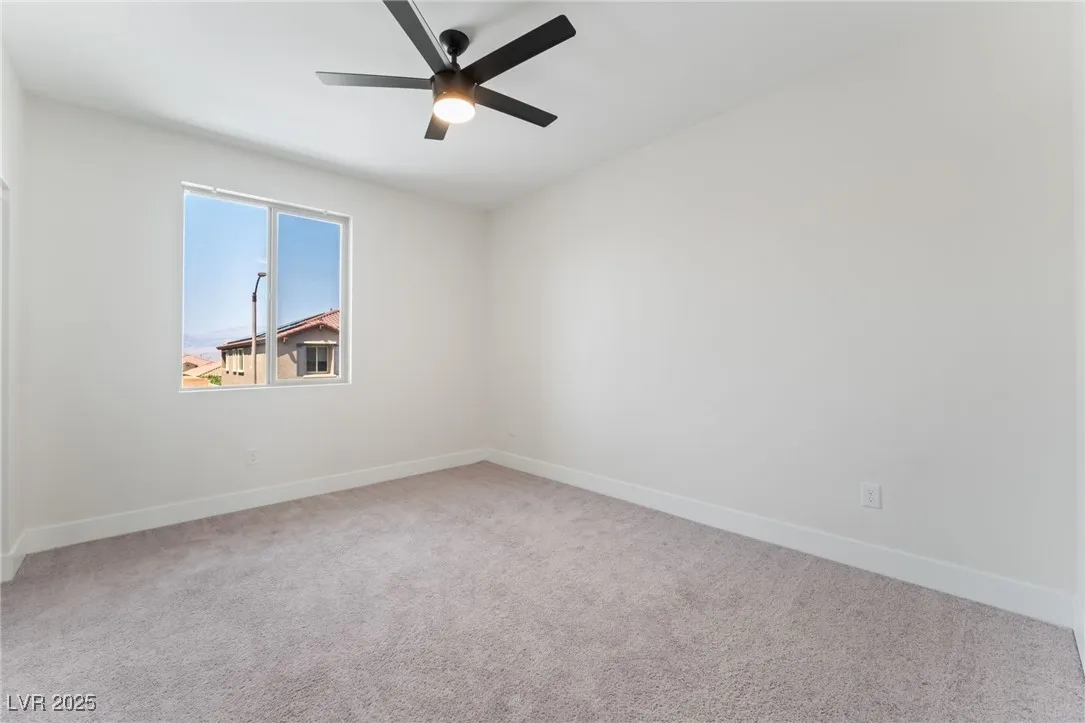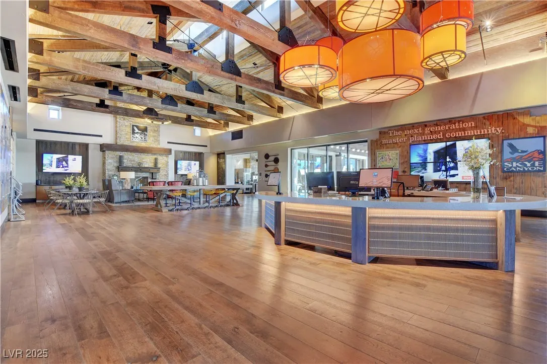 Nestled in the highly desirable Skye Canyon Community, this beautiful two-story home is conveniently located near shopping, dining, and freeway access. Built in 2022, this 4 bedroom, 3.5 bath home offers over 3,100 sqft of living space, a 3-car tandem garage, an additional office/flex space, and water softener. The open-concept living area features soaring ceilings with tons of natural light, and an electric fireplace. The kitchen is a chef’s dream with sleek granite countertops, bright white cabinetry, stainless steel appliances, and a walk-in pantry. Upstairs, you’ll find all bedrooms, a cozy loft, and a spacious laundry room. The primary suite includes a large walk-in closet and an ensuite bathroom with dual vanities, a glass-enclosed walk-in shower, and soaking tub. Outside, the low-maintenance backyard features a covered patio & turf area. Residents also have access to the Skye Canyon Community Center. Don’t miss the opportunity to make this stunning property your new home!